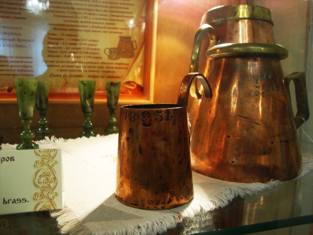 Остальные меры, все эти четверти, штофы, бутылки, чарки и шкалики есть во многих музеях. И в Пухляковском есть.