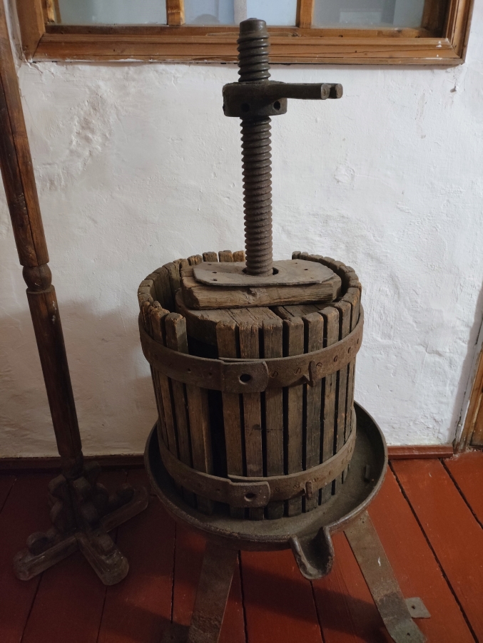 С удовольствием рассматривал детали и узлы сохранившихся винодельческих машин. Пытался понять, эвольвентное - это уже зацепление или ещё нет? И как регулировался сход и расхождение валков? Резьба метрическая или дюймовая? И многое другое.