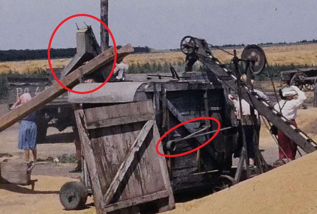 Но самое интересное на этой фотографии, это сама стационарная молотилка (веялка).
