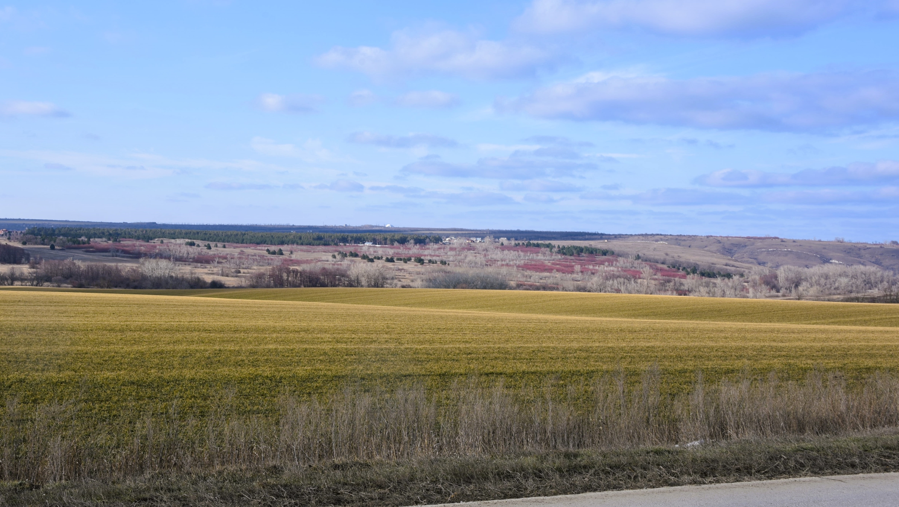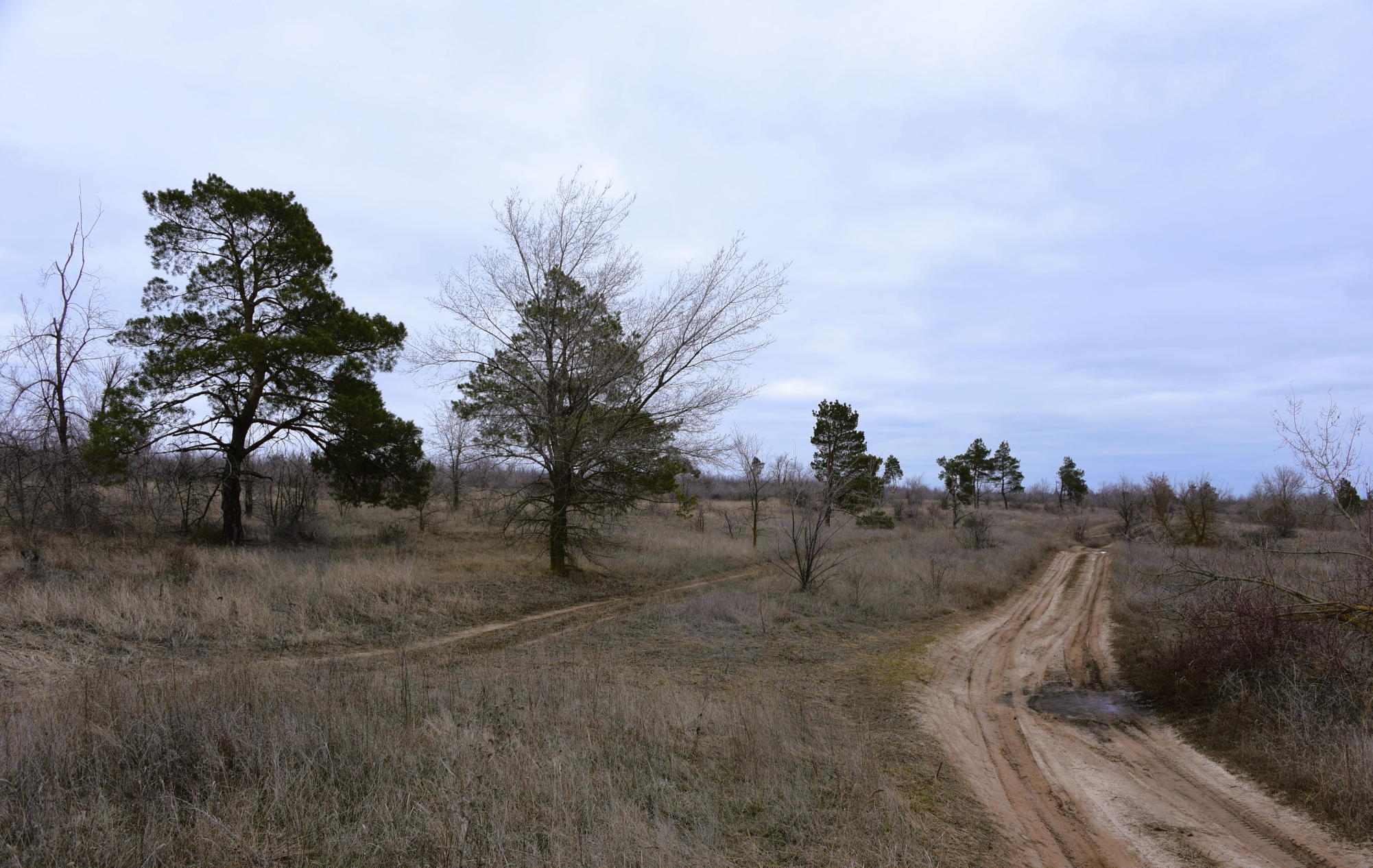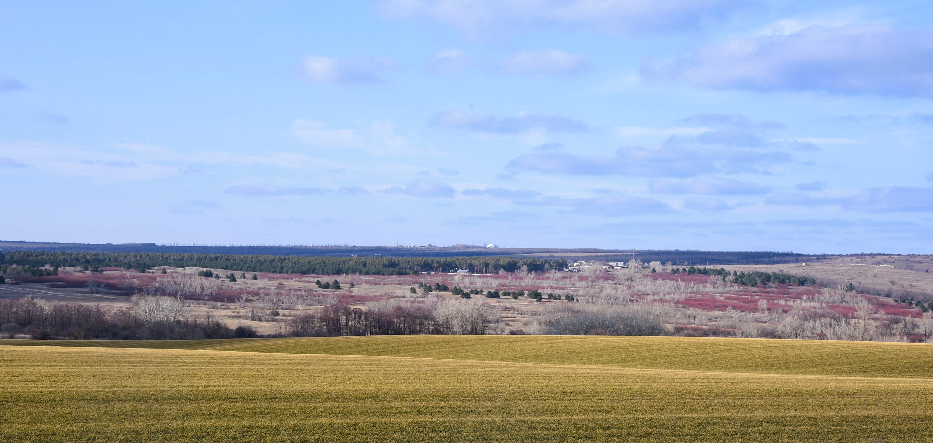 В лесополосах еще лежит снег, но на открытых местах его нет. Но нет и признаков весны.