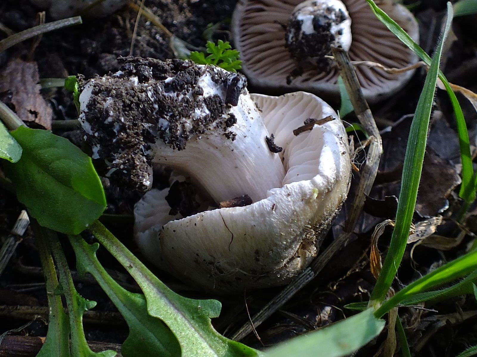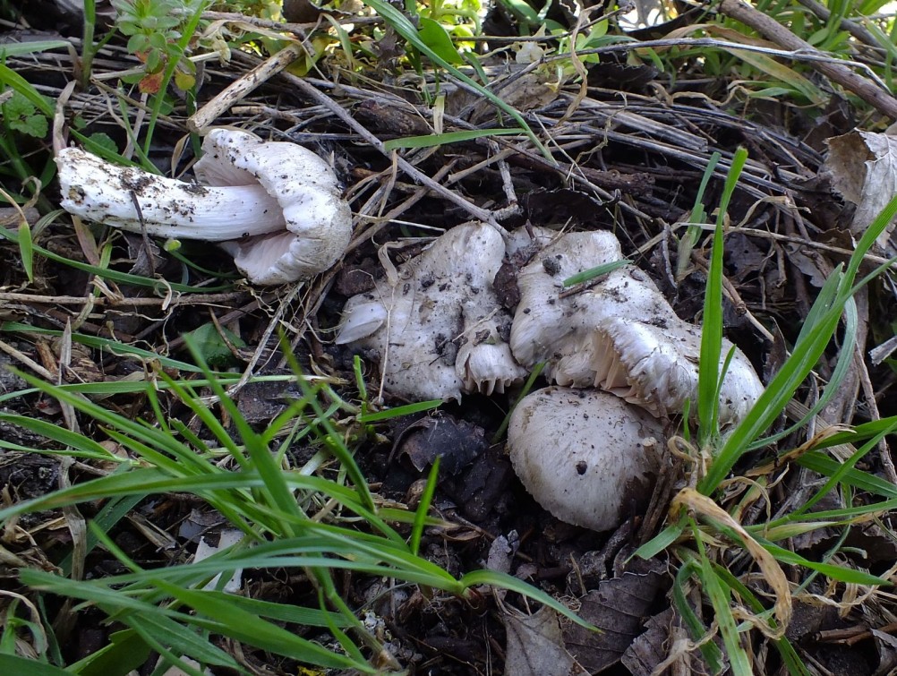 Моя половина предложила сегодня пойти посмотреть энтолому Саундерса, что выходит у нас самой первой из пластинчатых грибов. Я недоверчиво хмыкнул: рано. Вот через неделю можно сходить. Но Татьяна была настойчива, и я уступил. Ладно, думаю, сходим, пусть убедится в моей правоте. Мы пошли проверить один прогреваемый солнцем склон, где энтолома Саундерса появляется раньше других. И каково было моё удивление, когда моя спутница, разворошив аккуратно один бугорок, показала мне серебристо-серые шляпки энтолом! Она таки была права! Там же после тщательных поисков мы нашли ещё два сростка. И хотя больше нам энтоломы не встретились (а мы обошли ещё десятка два вязов), но факт налицо: сезон промысловых весенних грибов открыт!