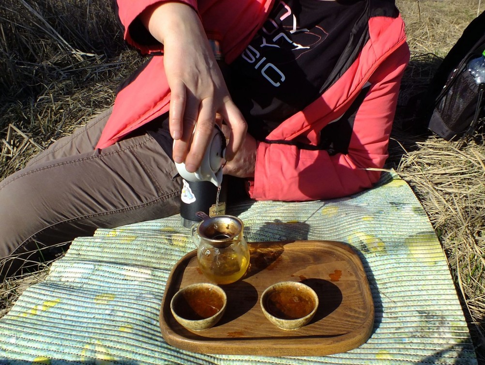 Естественно, на радостях мы обмыли это дело, и это тоже было открытием чайного сезона - первое чаепитие проливом на природе.