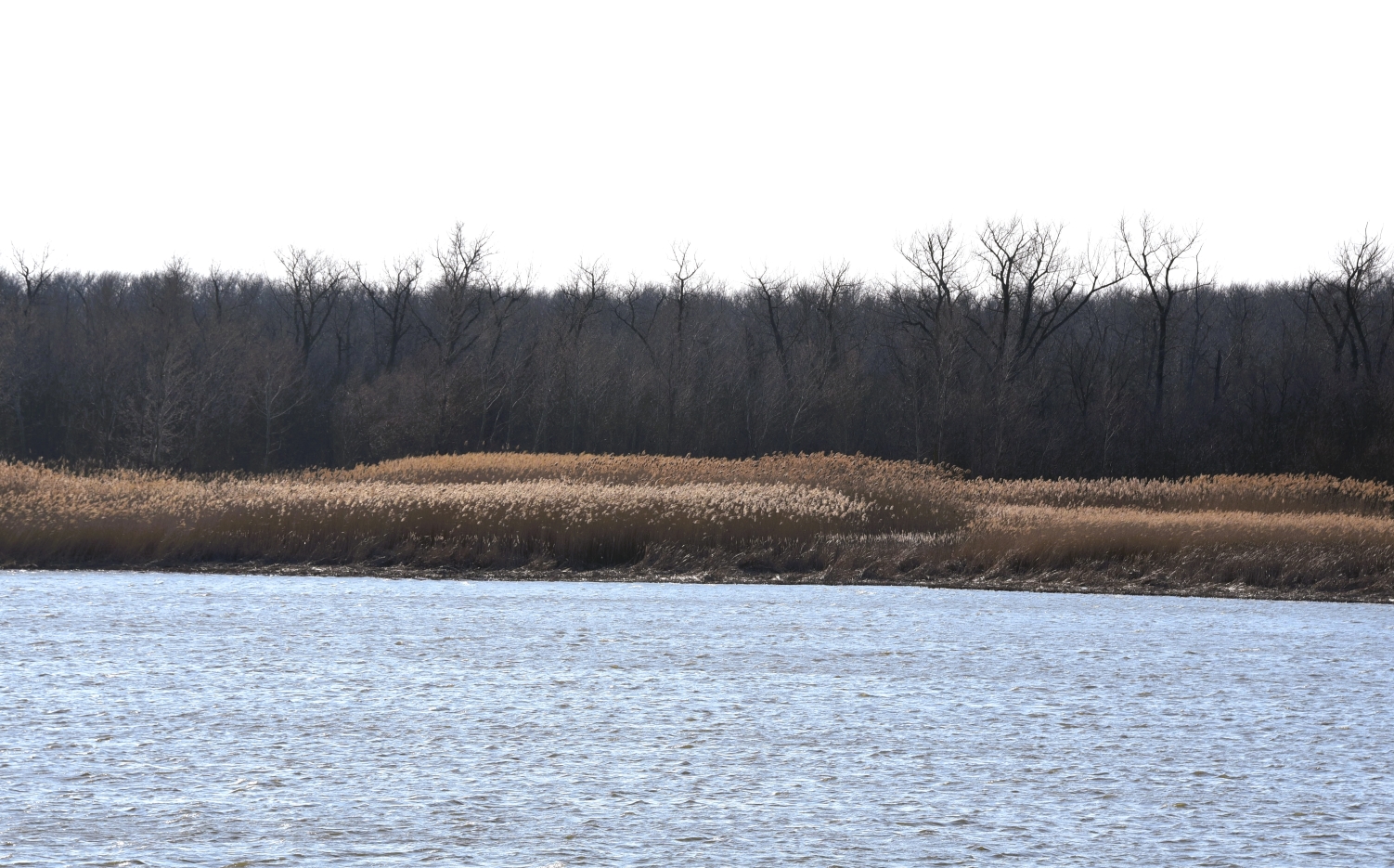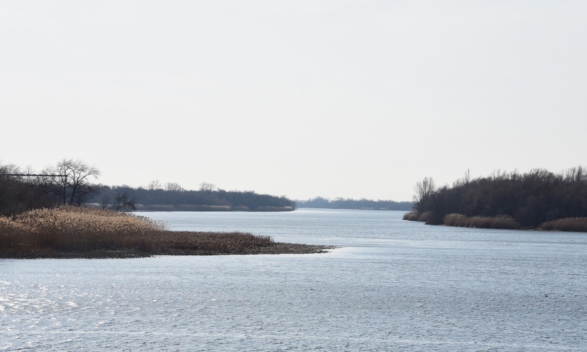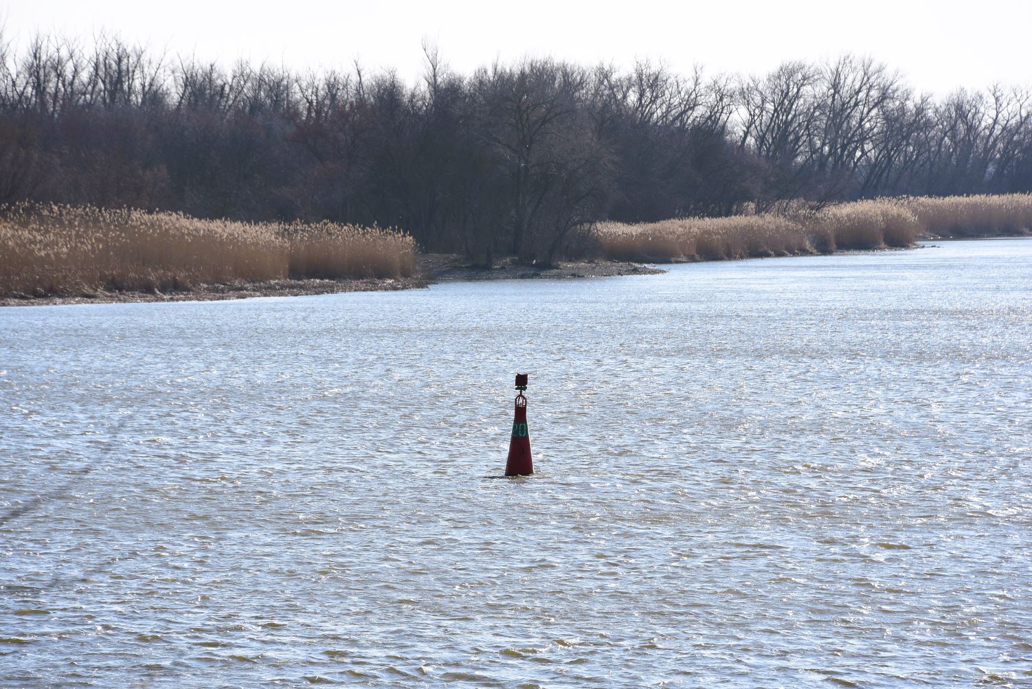 Воды много. И река помутнела, побурела принимая талую воду. Дует сильная верховка, но уровень реки не падает. Половодье.