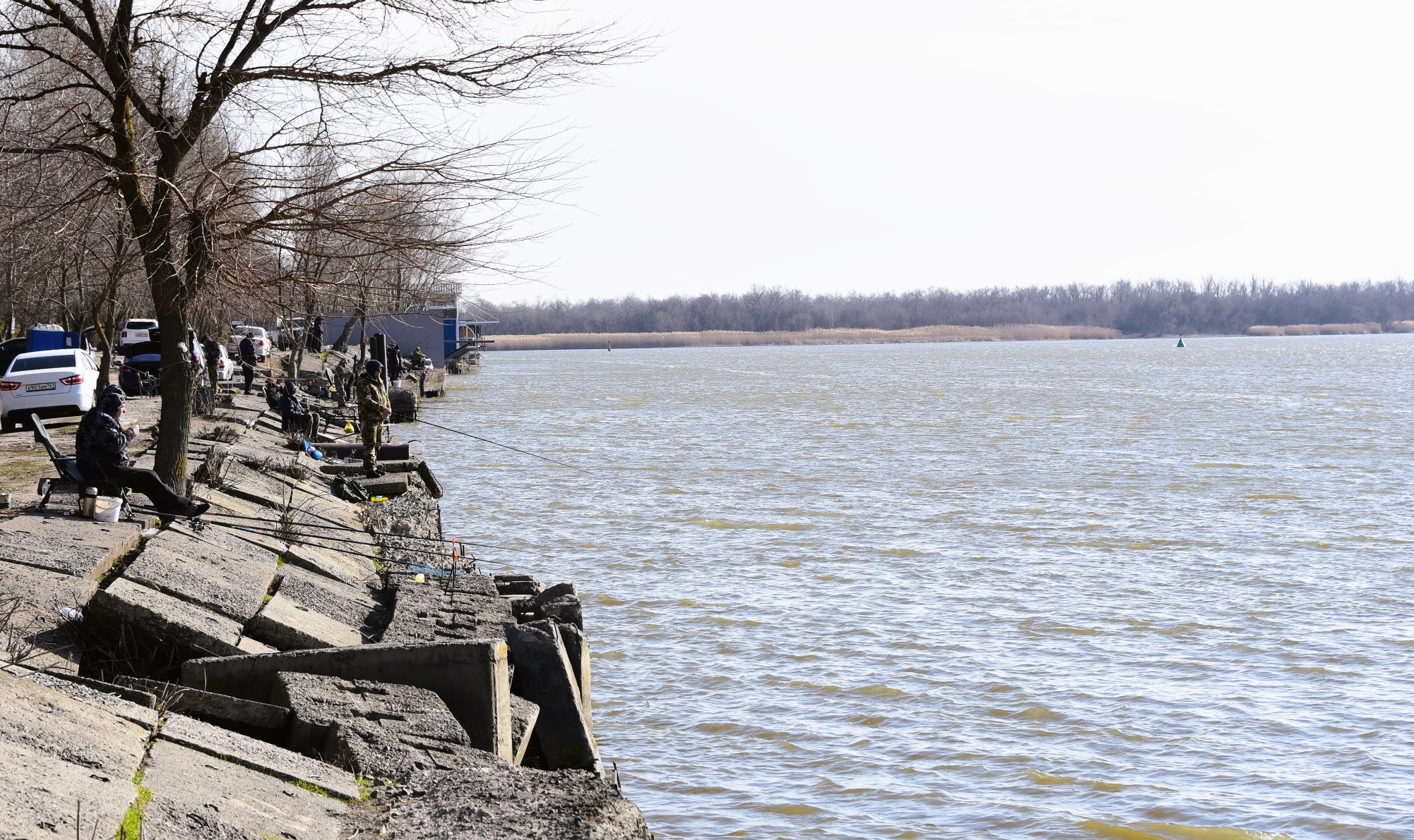 Лодок на воде нет ни на Стрелке, ни в Межонке. Но на плитах оживлённо. Не так, чтобы «яблоку негде было упасть» но мужики стоят. Скоро здесь будет тесно.