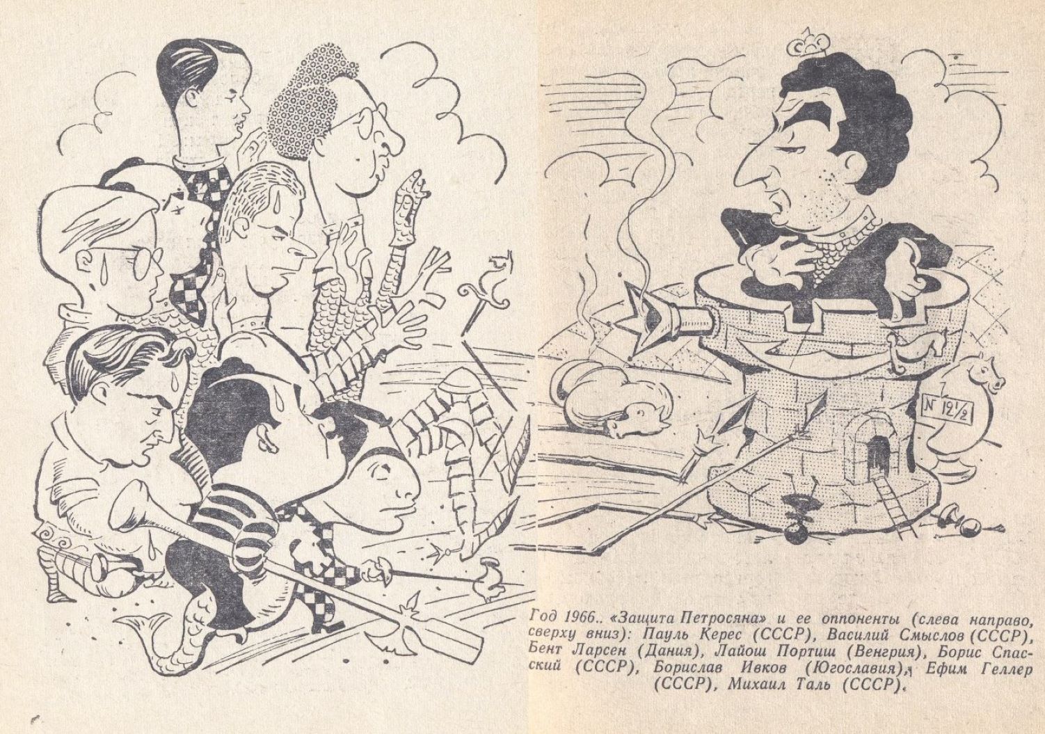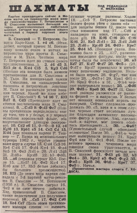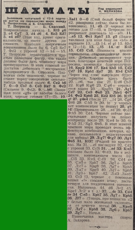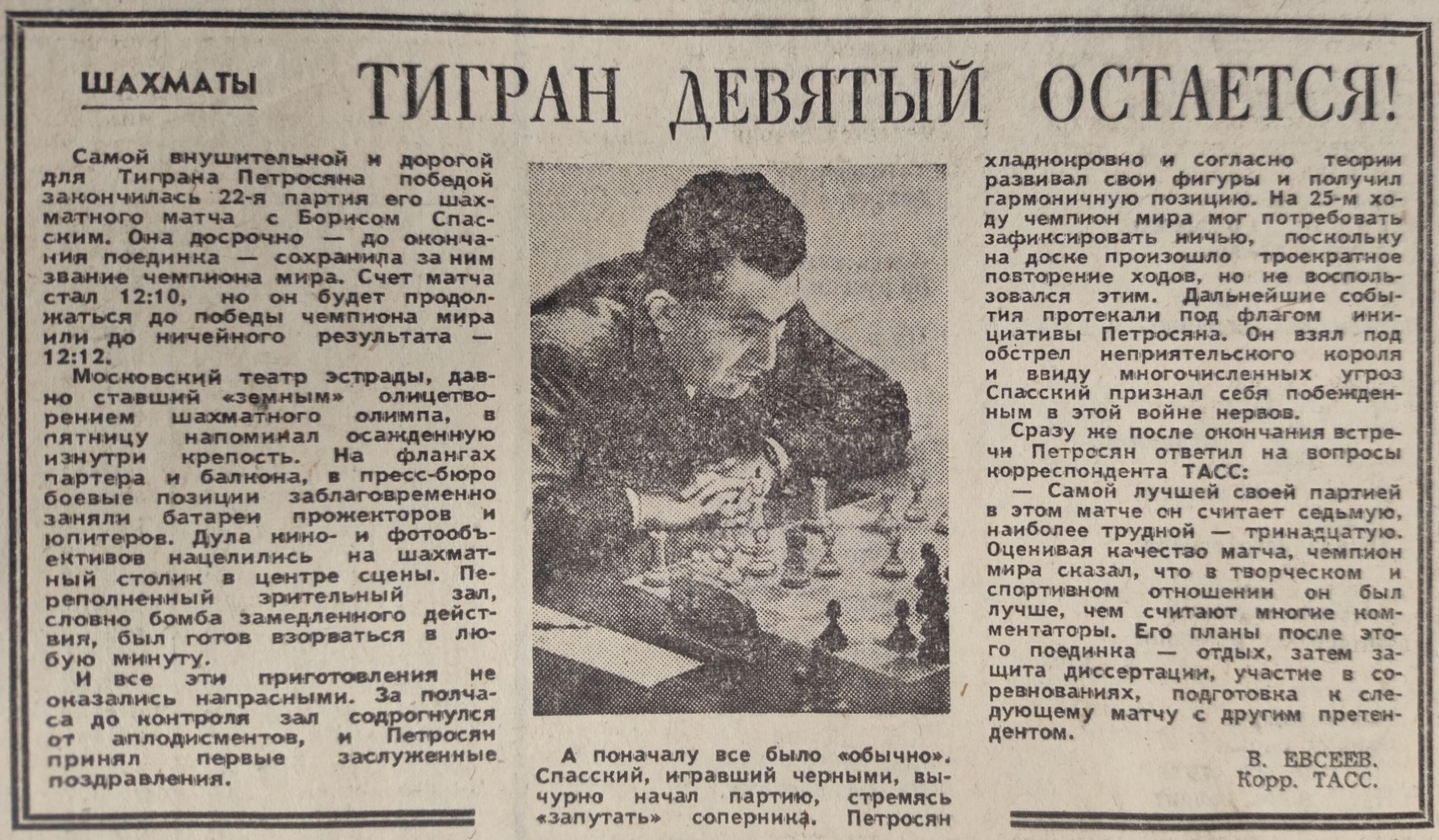 Победил в матче действующий, девятый чемпион, Петросян. «Тигран девятый», называет его газета на царский манер.