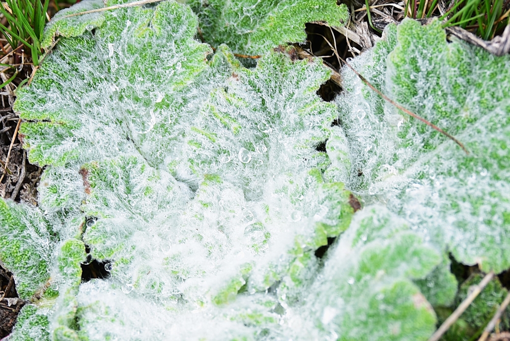 Вот капли недавнего дождя висят на ворсинках мохнатых листьев молодого катрана.