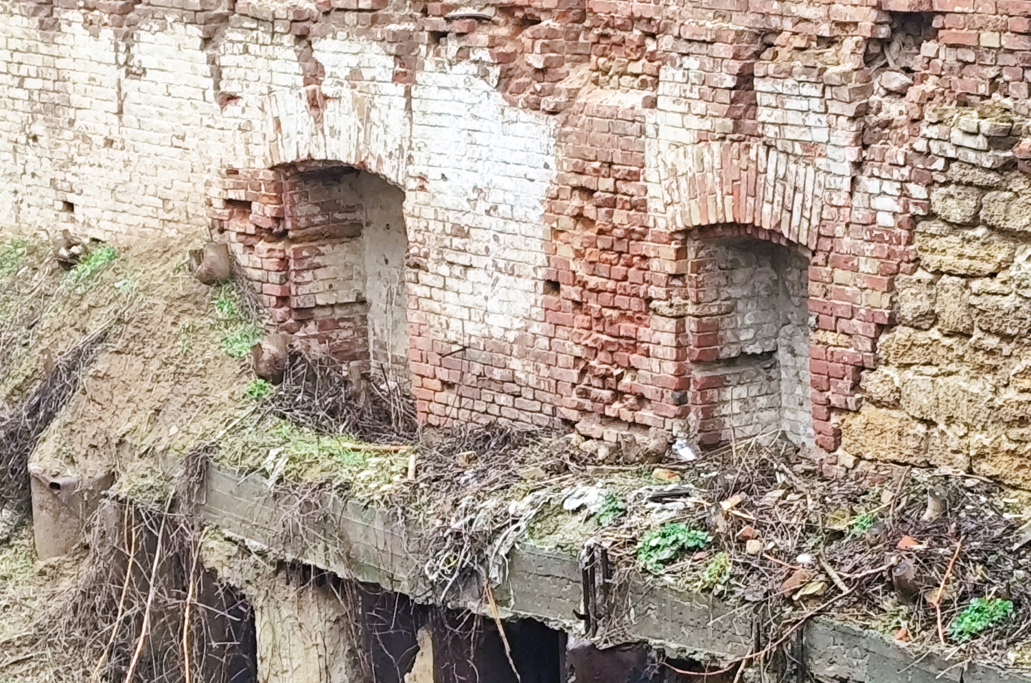 Возможно, это элементы фундамента старого исчезнувшего здания. Но судя по элементам кладки, скорее всего окна, которые со временем «утонули» в городской застройке.
