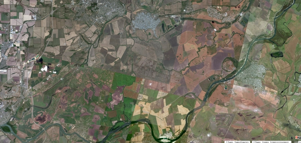 И если ерики ещё сохранились кое где. То из непересыхающих озёр в начале 21 века осталось только Монастырское озеро. Оно видно, как тёмное пятно в левом нижнем углу снимка.