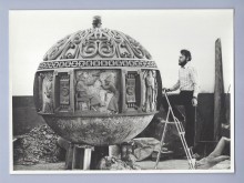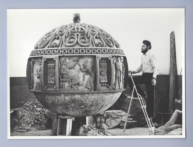 Скульптор Анатолий Андреевич Скнарин со своим детищем, третьим великолепным шаром "Сказки Пушкина". Фото 1980-х. На этот шар, к сожалению, до сих пор не нашлось денег. Я слышала, что его распилили. Анатолий Скнарин умер в 2020 от ковида. Зато на чемпионат мира по футболу угрохали тьму денег. Очень стыдно нам должно быть перед Александром Сергеевичем и перед Анатолием Андреевичем! Ведь Пушкин - наше все