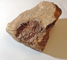 Дождь, темно и сыро. Пришло время добраться до некоторых летних находок. Этот камень лежал в груде таких же камней в одном из карьеров по Северскому Донцу, в котором добывают песчаник. Но внутри у него некое включение, по форме близкое к прямоугольной, но с затейливым рисунком внутри.