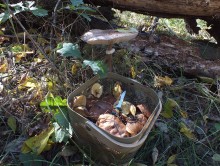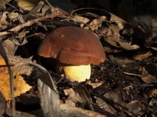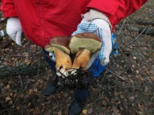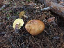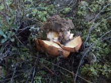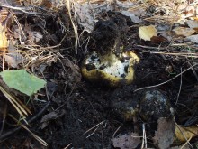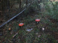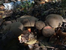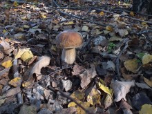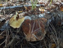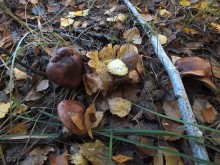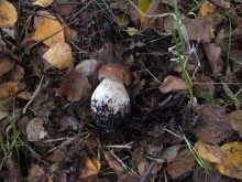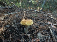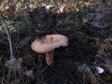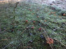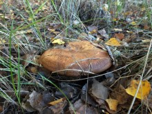 Леопардовый лесТрудно отказаться от возможности съездить в грибные места, когда знакомые грибники сами предлагают составить компанию. А собрались они в Каменские леса. Зная, что там нынче проходной двор, мы выехали в 4 утра и домчались по почти пустой трассе за 2,5 часа с учётом остановок. В лес вошли почти на восходе солнца. И в такую рань пара авто нам уже встретилась. Лес был тих и заиндевел - утренний заморозок всё покрыл инеем. Я поначалу только ходил, рассматривая грибы, более не предпринимая никаких действий - сразу замёрзли руки, которые пришлось греть в карманах.