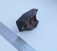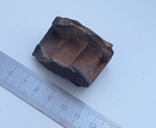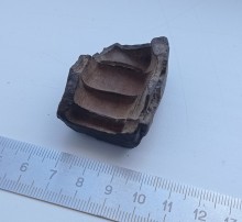 Нашел этот предмет в лесу, в песках, недалеко от берега реки. Сначала принял его за окаменелость. Потом за оплавленную деталь от машины. Потом решил, что он не похож ни на то, ни на другое. Материал плотный, больше всего напоминает керамику, но тяжелее её. Немного крошится, но достаточно крепкий. Вероятно это обломок, примерно одна треть, какого-то пустотелого предмета с двойными перегородками внутри.