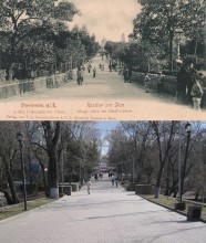 Аллея Городского сада изменилась мало, только фонарь справа подрос и покосился