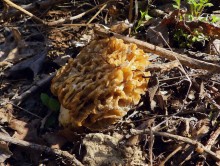 Первые последние сморчкиВ последних числах апреля впервые за время самоизоляции осторожно выбрался в Кумжу. Я даже внутренне был готов к штрафу, ведь охота - пуще неволи. Но обошлось. Вопреки прогнозам синоптиков, обещавших супердождливую третью декаду апреля, прошёл всего один дождик. Учитывая засушливую весну, этого крайне мало. В Кумже сухо, травы редкие и невысокие, и только в низинах и у воды зелень чувствует себя комфортно. Грибы не спешат особо показываться, ожидая живительной влаги. Это первый пестрец-разведчик, слегка переросший.