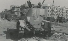 Подбитый советский танк БТ- 7 на Комсомольской площади.