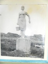 На дорогу, которая проложена в объезд кубанского села Екатериновка, смотрит моя старая знакомая - девушка с ведром. Вернее, скульптура девушки. И я смотрю на нее и любуюсь. Во времена расцвета социалистического реализма и диалектического материализма принято было воздвигать не только статуи вождей, но и рабчих, колхозниц, спортсменов, пионеров. Эти скульптуры были, как правило, типовыми. Но вот девушка с ведром, в отличие от "Девушки с веслом", мне больше нигде не встречалась, кроме как здесь - в приазовской степи, где в древние времена стояли совсем другие каменные бабы.
