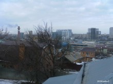На переднем плане - извивается ерик Грузский. За темной полоской леса он впадает в ерик Широкий, а тот в свою очередь впадает в реку Азовку, которая течет под горой. А на горе раскинулся исторический район Азова - Красногоровка. Но нас интересует самый маленький водоем на фото - в левом углу - ерик Посоцкий. Это название произошло от слова "Посольский".
