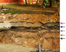 Не тротуар - история страныЭтот снимок я сделал в прошлом году, на одной из улиц старого Сельмаша. Прокладывают трубопровод. Траншея прорезала тротуар, обнажив всю его историю. Посмотрим: