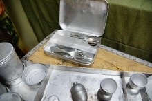 Вешенский краеведческий, итальянская кухня на Еланском плацдарме.Если бы я не знал, где нахожусь, то принял бы этот роскошный, походный набор посуды за дорогой аксессуар компании богатых охотников или рыбаков. Эпикурейцев и ценителей комфорта.