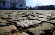 Гулял по Майдану. Погода отличная, смотрел то под ноги, то в небо. Хорошо. И вот при очередном взгляде под ноги обратил внимание на один из булыжников, покрытый кварцевой коркой.