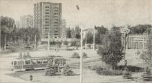Октябрьская площадь в 1978 году. Трамвай №1 еще ходит до Сельмаша. Он пересекал площадь и шел на Сельмаш по ул. Мира. А перед магазином "Океан" на той стороне площади находился один из самых оригинальных ростовских фонтанов. Пара дельфинов парила в струях воды над шаром, больше всего напоминавшим батискаф. Фото это фонтана очень редки. У меня к сожалению нет.