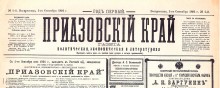 "Приазовский край"Эдуард Вартанович Вартанов подарил Меотиде скан первого номера, наверное, самой известной дореволюционной ростовской газеты «Приазовский край», вышедший 1-го сентября 1891 г. Утверждается, что этого номера нет ни в ДГПБ, ни в Российской государственной библиотеке. Спасибо.