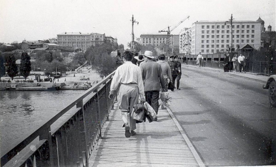 А это фото начала 60-х. Последние годы существования высоководного моста на Буденовском. Его называли Автогужевым. Красивое название.