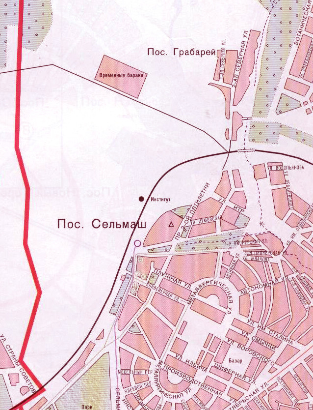 Третье - ЖД путь выходящий с территории завода под полотном улицы Страна Советов. Проезжающие по этой улице не подозревают, что в одном месте едут по мосту. Этот вариант не вероятен, потому, что эта площадь осваивалась после войны.