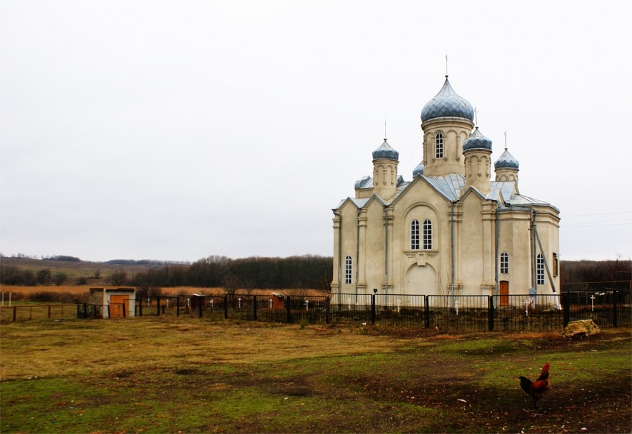 Первый пункт на пути уже упомянутая Греко-Тимофеевка. Церковь Николая Чудотворца стоит на просторной околице, в низине. Ее видишь внезапно во всей красе, повернув с сельской улицы. И первая мысль – Архангельский собор Кремля. Только вместо интуристов вокруг наш петух.