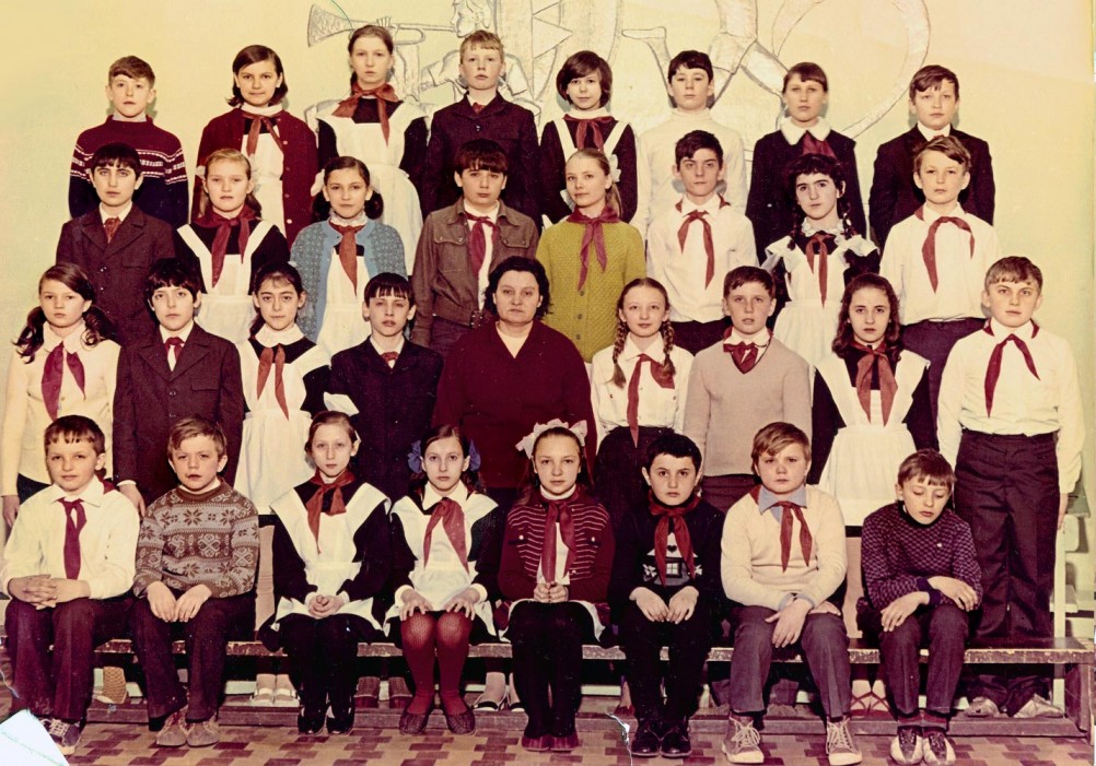 Станислав Павлович. Классной была Мария Степановна Нестеренко. Фотка какая-то спонтанная. Словно фотограф явился внезапно. Кого из преподов нашли, тот и сфоткался. Если это вообще был фотограф, а не чей-то родитель. Контраст бешеный. И не альбом, а групповая. В пятом и вроде до седьмого... стоп, а не Аннушка у нас и в восьмом была классной? Тогда, возможно, она отказалась. У нас дошло до конфликта с родителями.