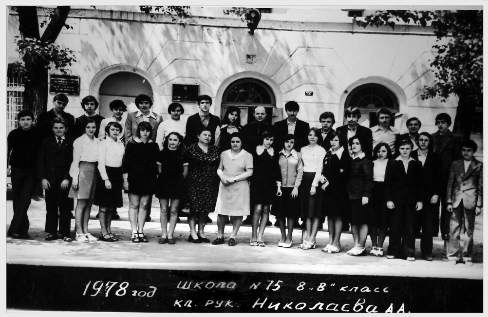 На выпуске 8 класса, вижу трех преподавателей : Жанну Петровну Чурсину, Раису Степановну Сумбатян и учителя физкультуры, Станислава ( отчество не помню, он вообще странный был) Цветкова. А кл. руководитель не пойму где. У нас Николаева А.А. ничего не преподавала.