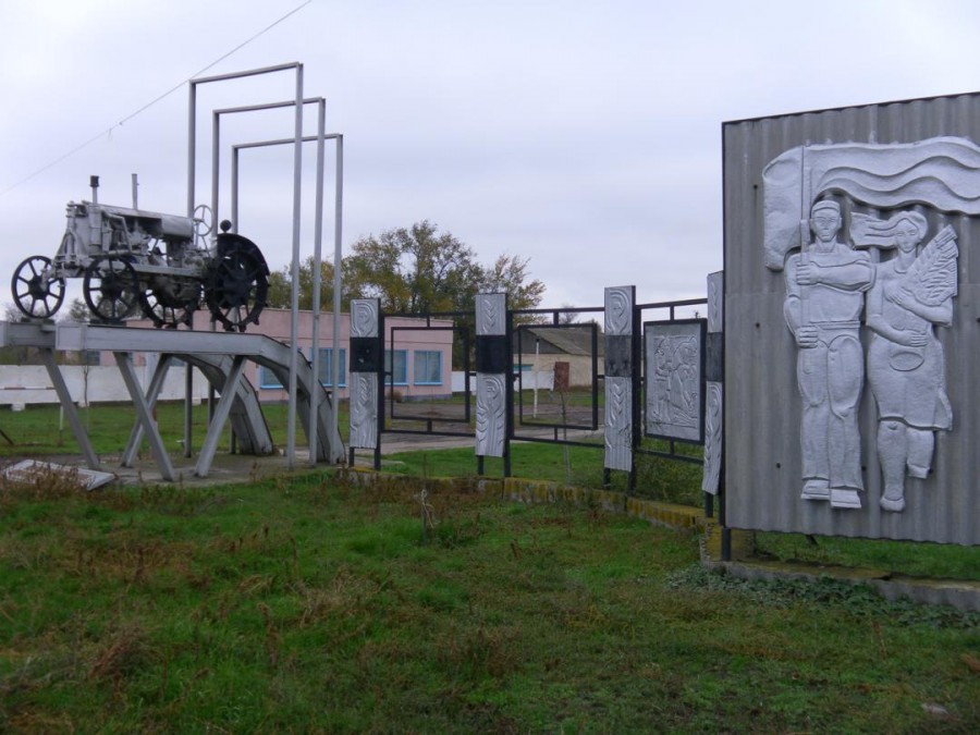 Неподалеку от сего монумента стоит в Красном Октябре еще один очень интересный памятник - трактор "Универсал" Владимирского тракторного завода. Памятник - в прекрасном техническом состоянии. Завести его мы не пробовали, но, думаю, что это удалось бы. Надпись гласит, что воздвигнут он "Проложивщим первую борозду". Поскольку первую борозду здесь проложили именно уругвайцы-лубковцы-новоизраильтяне, этот трактор и следует признать самым настоящим памятником Новому Израилю на Донской земле.