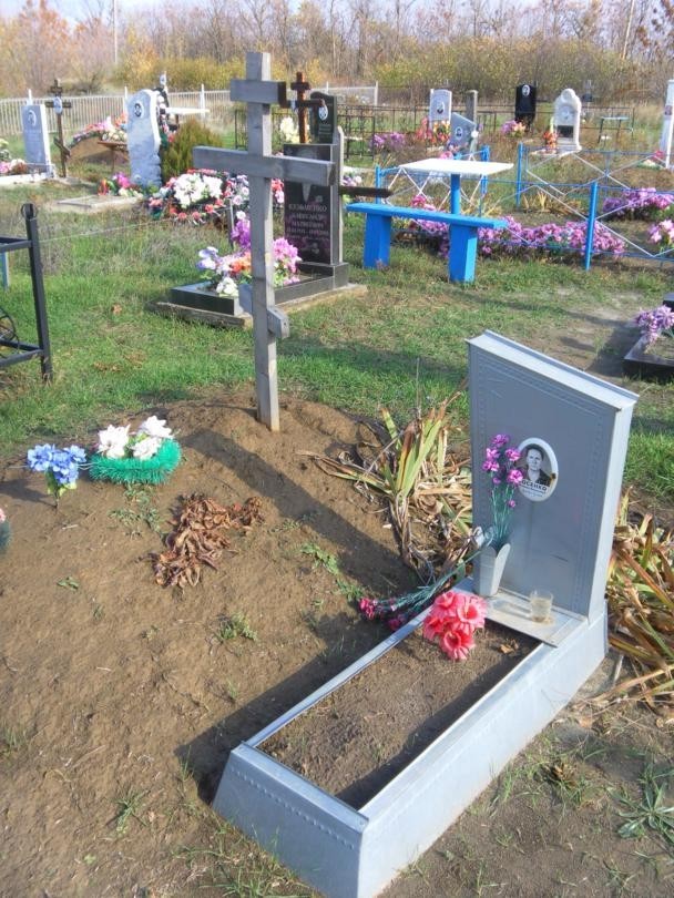 На сельском кладбище мы отыскали, предположительно, его захоронение. "Предположительно" - потому что идентификационных надписей захоронение не имеет, но вблизи покоится прах Антонины Михайловны Косенко ...