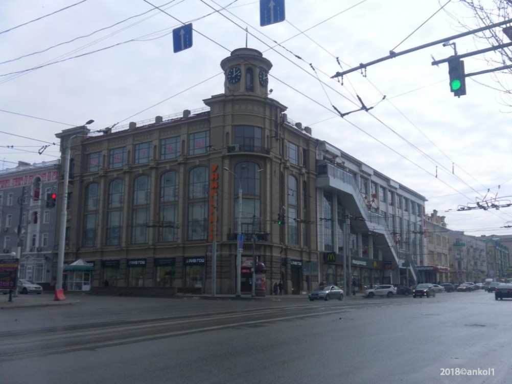 Как написано в одном из выпусков старой городской газеты: «В начале XX века в тесных помещениях этого подвала располагалось кафе «Подвал поэтов», богемное заведение с миниатюрной сценой, облюбованное местными поэтами-ничевоками. 15 августа 1920 года на сцене «Подвала поэтов» впервые в Ростове выступил «Председатель земного шара» поэт Велимир Хлебников. Чуть позже ростовский театр «Театральная мастерская» поставил там пьесу Хлебникова «Ошибка смерти» (реж. А. Надеждов.) Это была первая театральная постановка в творческой биографии Хлебникова.» Пройдем же в туалет (или к туалету?). Сейчас в него, как и прежде, вход через две узенькие дверцы. Но они заперты. Та, что слева - была "Ж", та что справа - "М". Но за стеклом одной из дверок ( которая справа) вывешена та самая публикация из газеты "Вечерний Ростов".