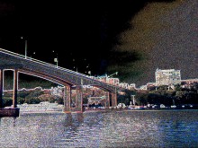 2005 год. Я с «плёночной мыльницей», вышел на причал катеров перевозящих людей на городской пляж, и сделал эту серию фотографий. На которой вместил всю открывающуюся панораму на город.