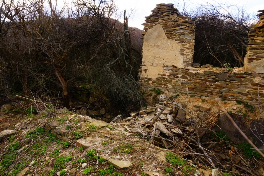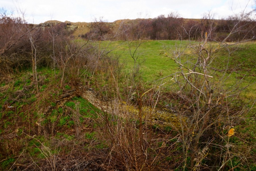 Осмотрев глиняные берега реки и впадающего в нее ручья, я еще в нескольких местах обнаружил утонувшие в земле каменные стены и сооружения.