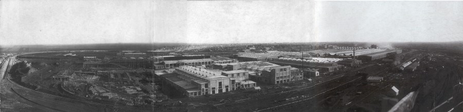 Формат сайта не позволяет рассмотреть во всей полноте следующее фото. Поэтому буду постепенно приближать его. Это панорама Сельмашстроя. Поселок Сельмаш, от поселка Маяковского слева, до заводоуправления справа.