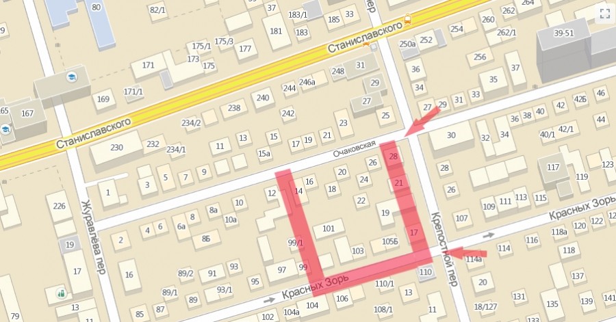 А так с перекрестка Крепостной – Красных Зорь. Здесь было подножие валов редута.