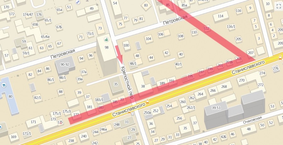 Если стать на трамвайные пути на Станиславского и посмотреть вверх по Крепостному, то ясно читается почти исчезнувшее возвышение.