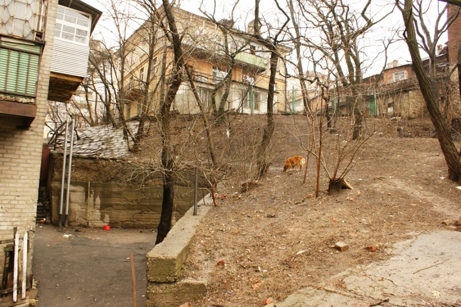 Примерно так редут располагается на карте современного города. Стрелочкой я показал направление снимка помещенного ниже. Сразу оговорюсь, все снимки 2010 года. Объясню. На подобных снимках всегда видна чужая жизнь, чужая собственность, те области в которые я не вторгаюсь. Поэтому если нет возможности избежать публикации фото чужих домов и машин, то я стараюсь выставлять как можно более старые фото.