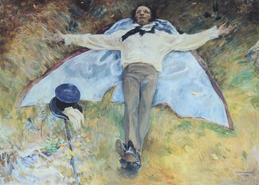 Еще есть в картинной галерее города Сальска картина художника А.Д. Романычева «Печаль моя светла…». И хотя к полотну нет пояснений о точном месте, где художник вообразил поэта, несомненно, это в наших краях.