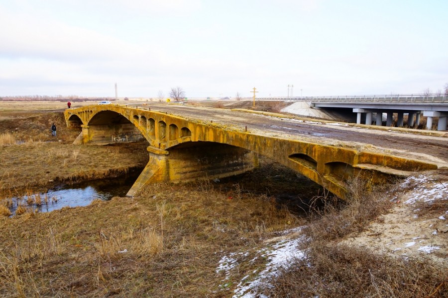 Есть еще один интересный мостОк «анженерной конструкции» в цимлянских степях.Перекинут через невеликую речку Кумшак. Построили его в 1914 году итальянские инженеры из невиданного в те годы железобетона.