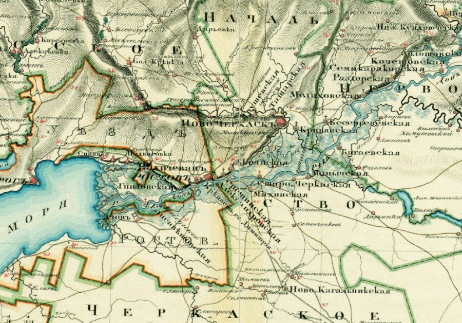 Когда была проложена дорога между двумя городами, спорить не стоит. Проложили ее сразу в 1806 году при строительстве новой казачьей столицы. На карте 1833 года она уже выглядит главной дорогой на нижнем Дону.