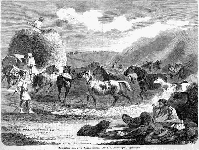 Тоже время, только не Грузия, а Малороссия. Просто гоняют лошадей по кругу, где насыпана необмолоченная пшеница. Без всяких премудростей.