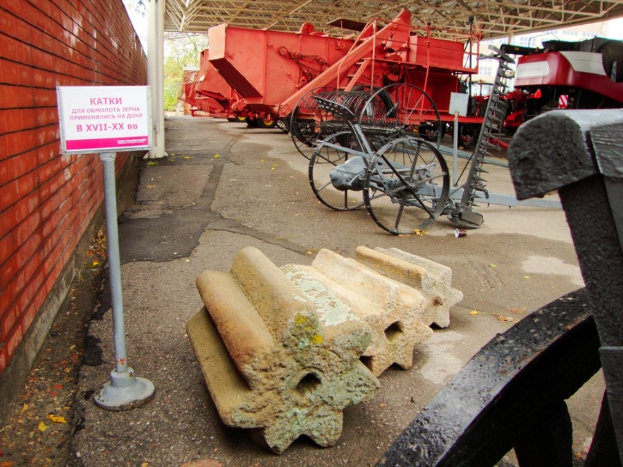Где сохранились станки с каменными катками? Одна в Танаисе. Хоть сейчас запрягай и молоти. Хотя я не знаю, это старинное орудие или реконструкция?