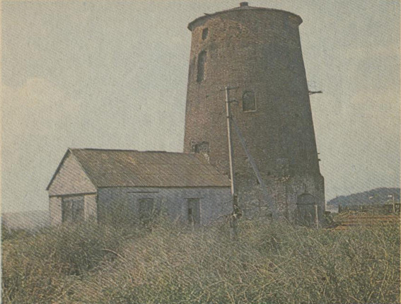 «Возле поселка Учхоза берег резко выдается в море небольшим мысом. И на мысу, на самом краю берегового обрыва, стоит каменная старинная мельница. Здание мельницы большое, круглое в плане, тшатльно выполнена кладка стен из красного кирпича с выветрившимися от времени швами. Окна скорее похожи на бойницы старых крепостей. К каменному остову ветряка присланены огромные жернова с полустершейся насечкой. Интересно, что сооружения такого рoда, даже утратив большую часть своих деталей, все же сохранают обаяние древности, и по полуразрушенному облику их нетрудно догадаться и о первоначальном назначении постройки.