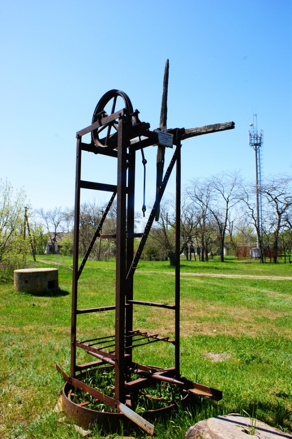 Следующая чудесная находка ждала меня в Глафировке. Там, стараниями Николая Ивановича Новака, сохранился механизм ветряной мельницы. Он стоит перед входом во флигель помещичьего дома, в котором теперь располагается местный музей.