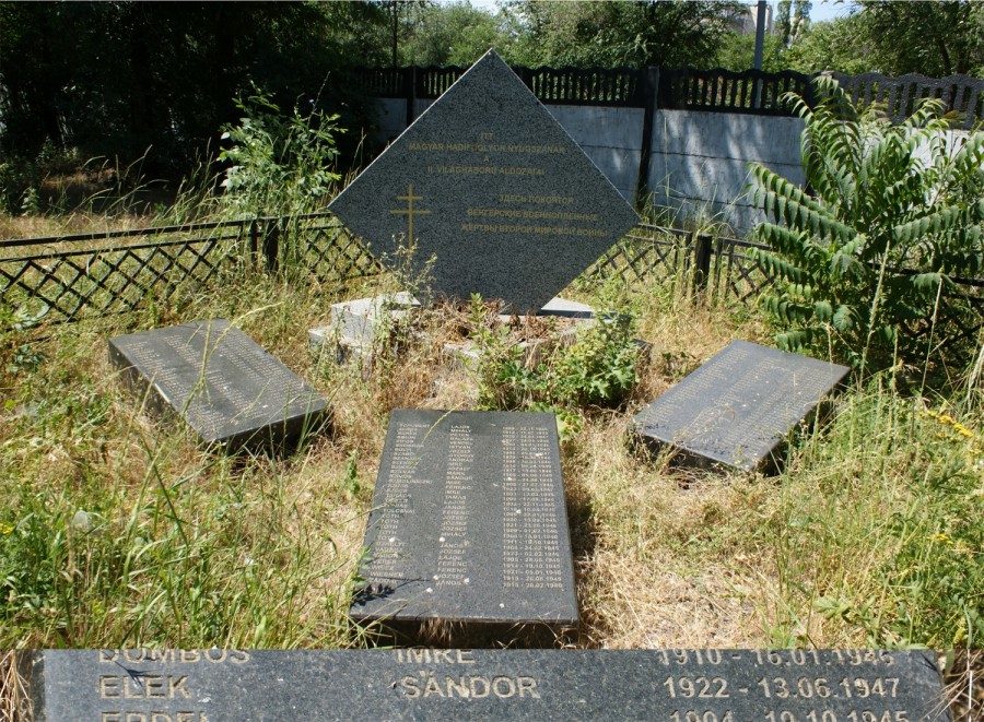 А этот памятный знак стоит в глухом углу Братского кладбища. Он посвящен венгерским военнопленным. Где содержались, не знаю.