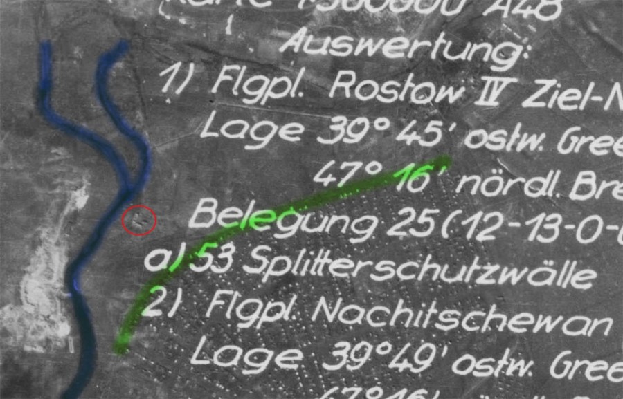 Внимательно изучив аэрофотосьемку 1943 года, можно точно определить положение этих конюшен. (на немецкие буквы не обращайте внимание)