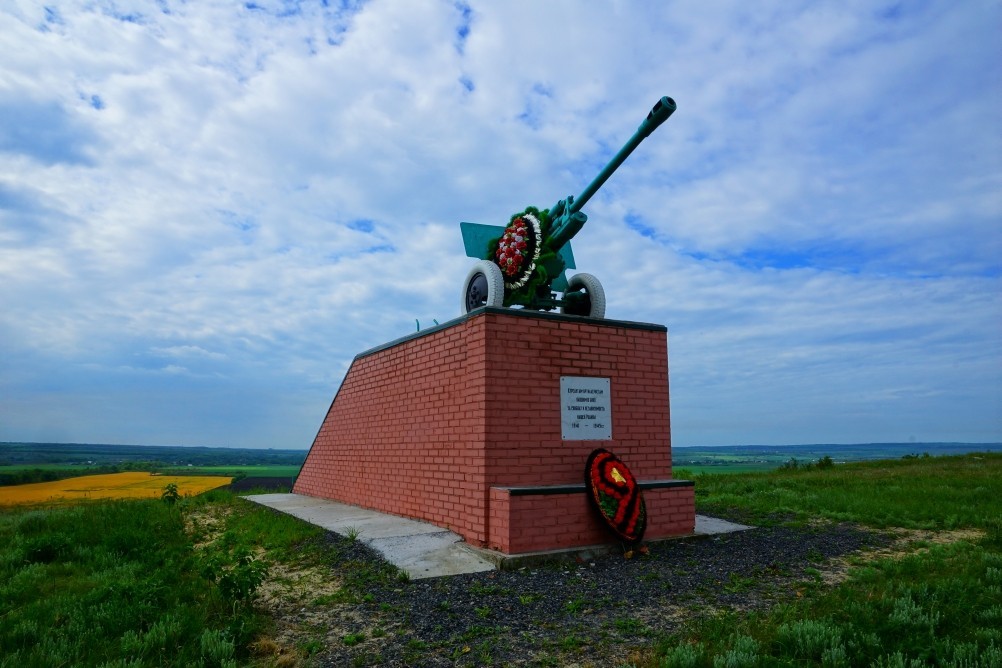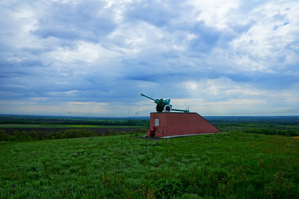 А на другом борту речной долины, неразличимый из хутора, такие здесь расстояния, стоит памятник - пушка.